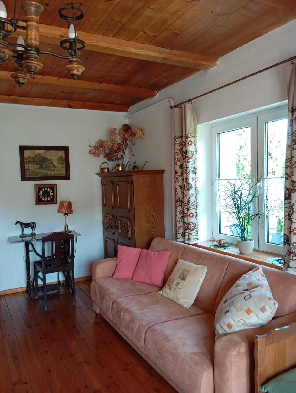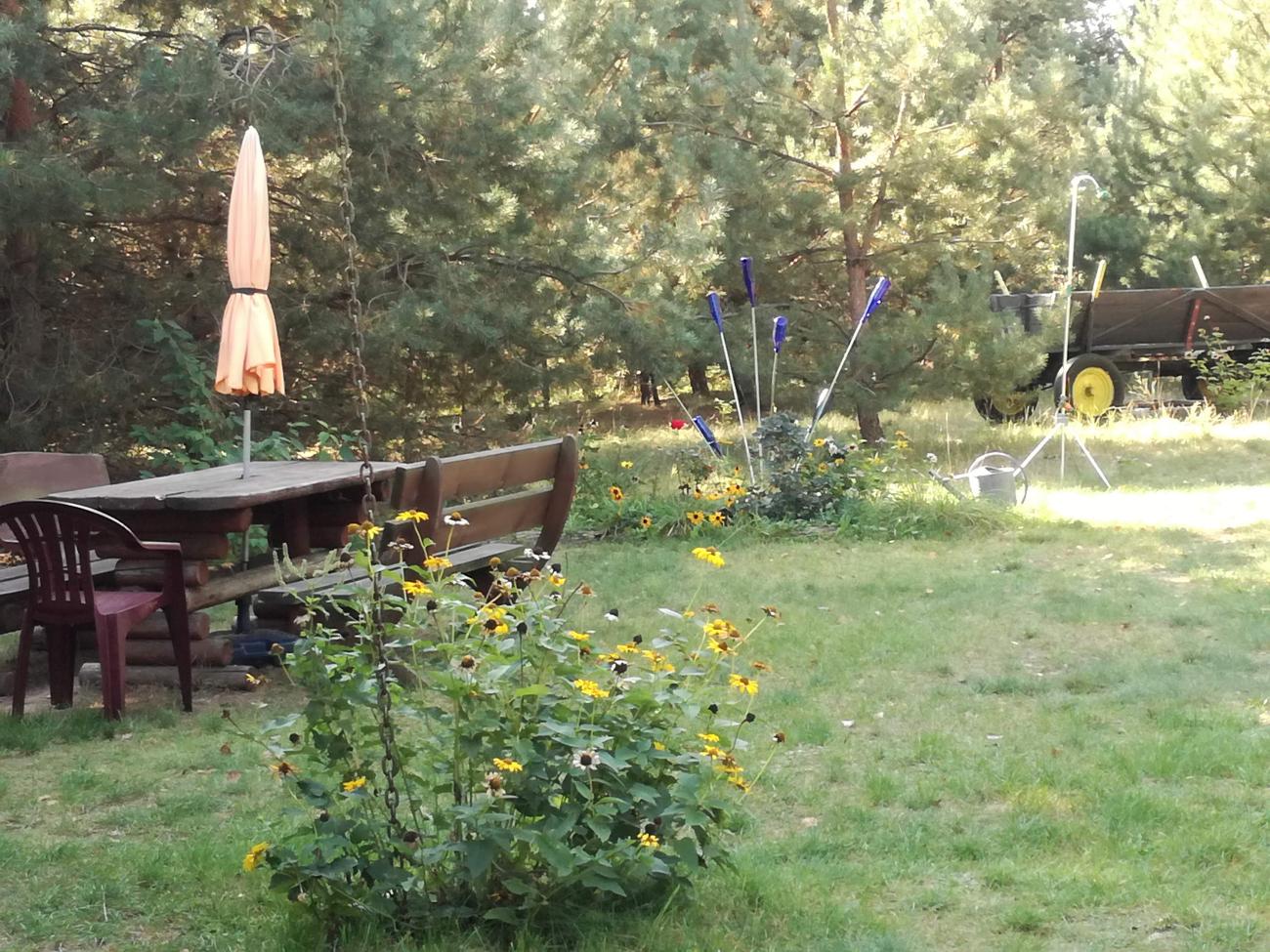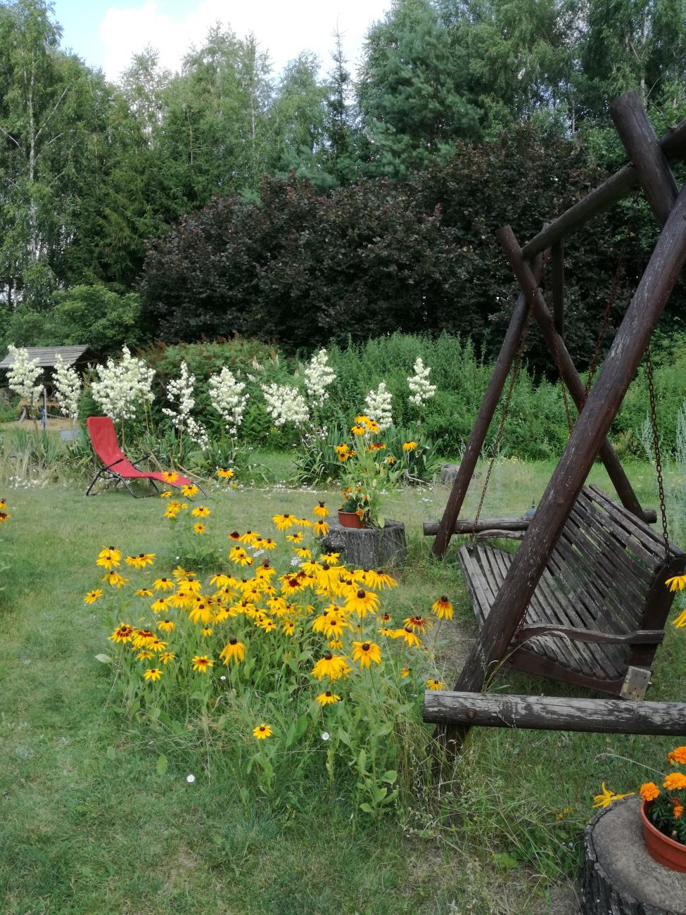 Z ogrodu jest bezpośrednie wyjście do lasu. Nie mieszkamy nad jeziorem, ale urokliwych jezior w okolicy bliższej i dalszej  jest kilka. Najbliższe kąpielisko to jezioro Ostrowite z zapleczem, około 3 km.
