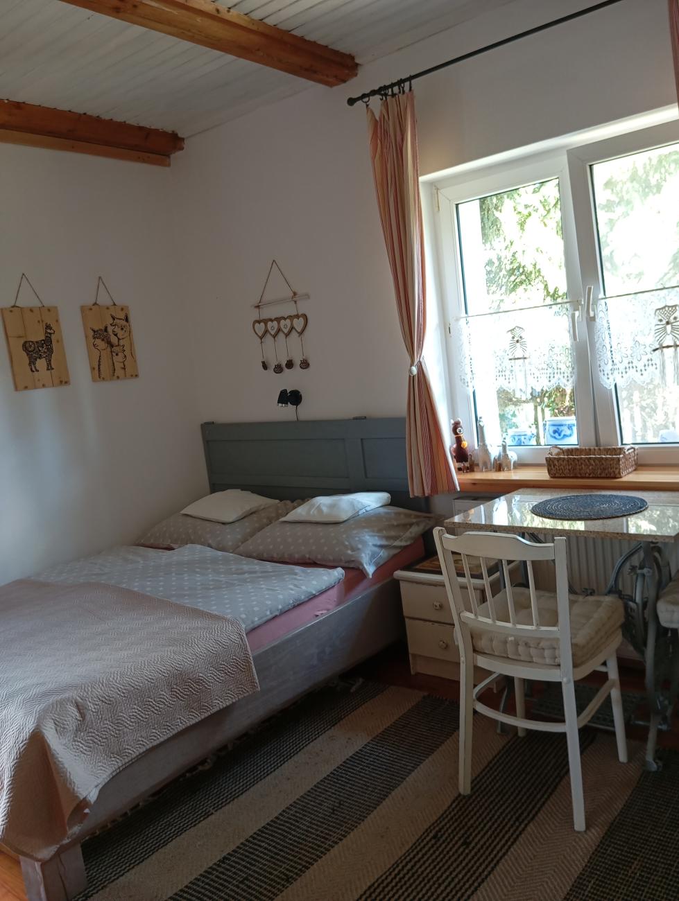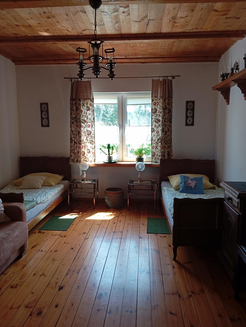 POKÓJ ALPAKOWY: ma 1 podwójne łóżko (140szer.) i 1 łóżko pojedyncze, komoda, stoliki, łazienka z prysznicem (suszarka), oraz osobne wejście.